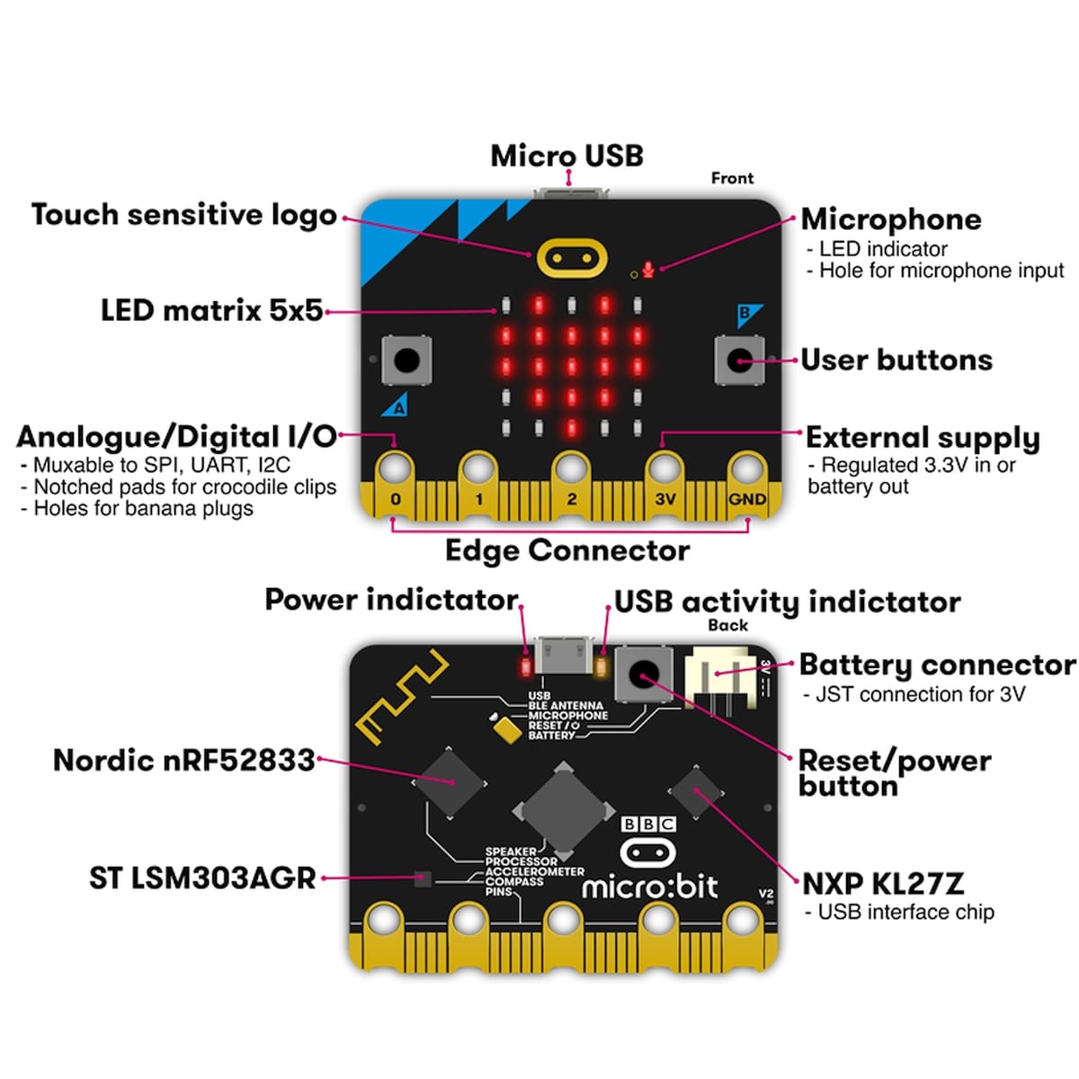 A BBC micro:bit V2 egy kifejezetten oktatási célra tervezett, programozható mikrokontrolleres fejlesztőpanel, amellyel a kódolás, az érzékelés és a vezeték nélküli kommunikáció gyorsan, látványosan és különösebb előkészítés nélkül kipróbálható. Ideális választás iskolai foglalkozásokhoz, szakkörökhöz, otthoni tanuláshoz és hobby projektekhez is.