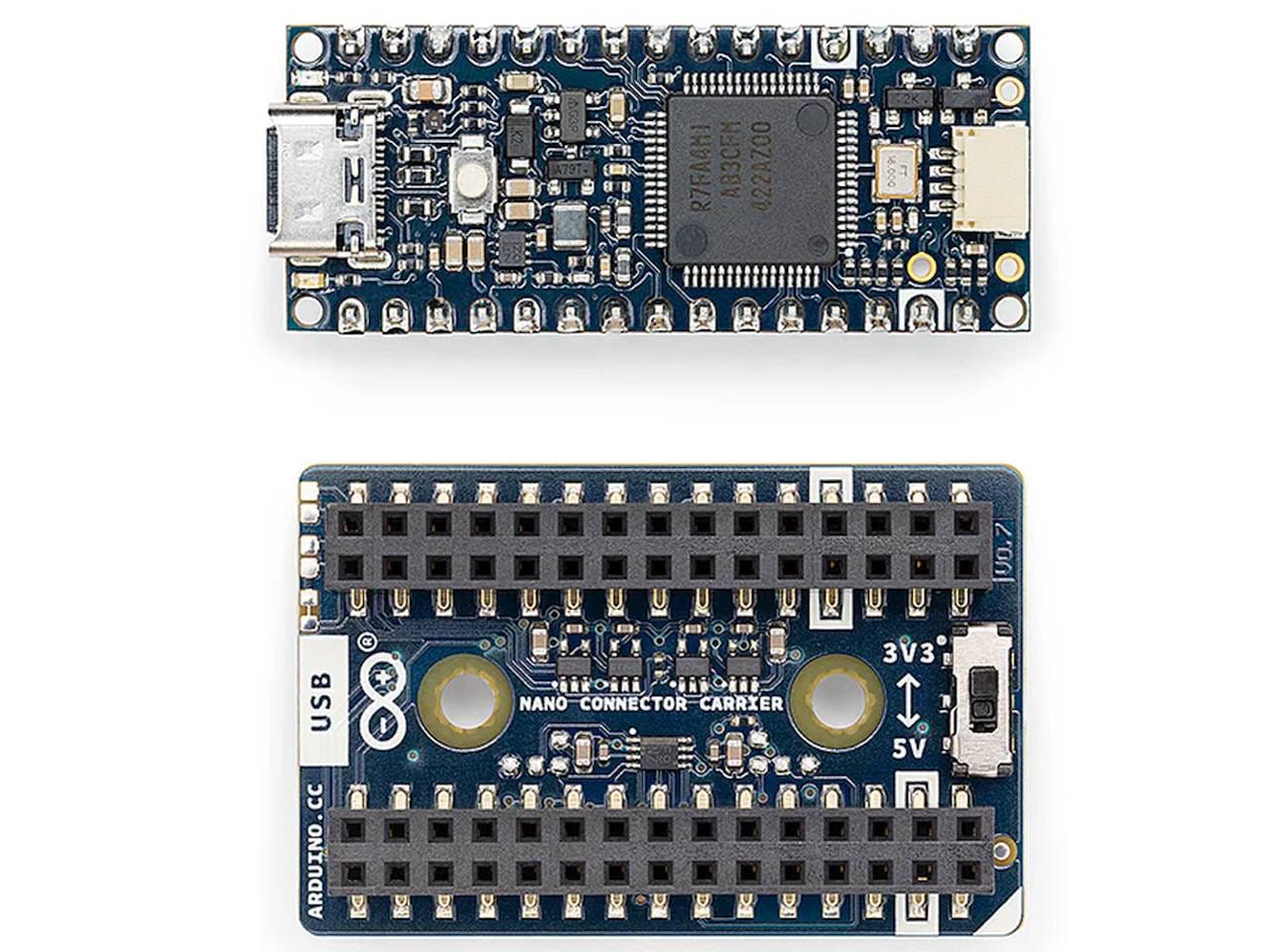 A Nano Connector Carrier, magyarul Arduino Nano‑csatlakozó hordozótábla, egy rendkívül kompakt, plug‑and‑play csatlakozórendszer Arduino Nano típusú fejlesztőlapokhoz. Kialakításának célja, hogy gyors és intuitív prototípus‑építést tegyen lehetővé, különféle Grove, Qwiic és Modulino modulok használatával – külön forrasztás nélkül. A beépített microSD foglalat révén adatnaplózásra, valós idejű mentésre és edge AI alkalmazásokra is kiválóan használható.