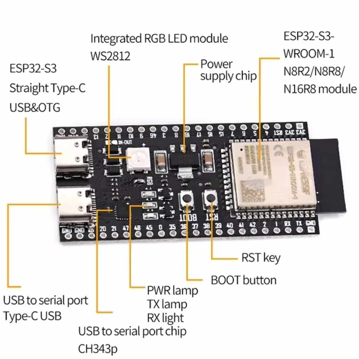 • SoC: ESP32-S3-R16N8