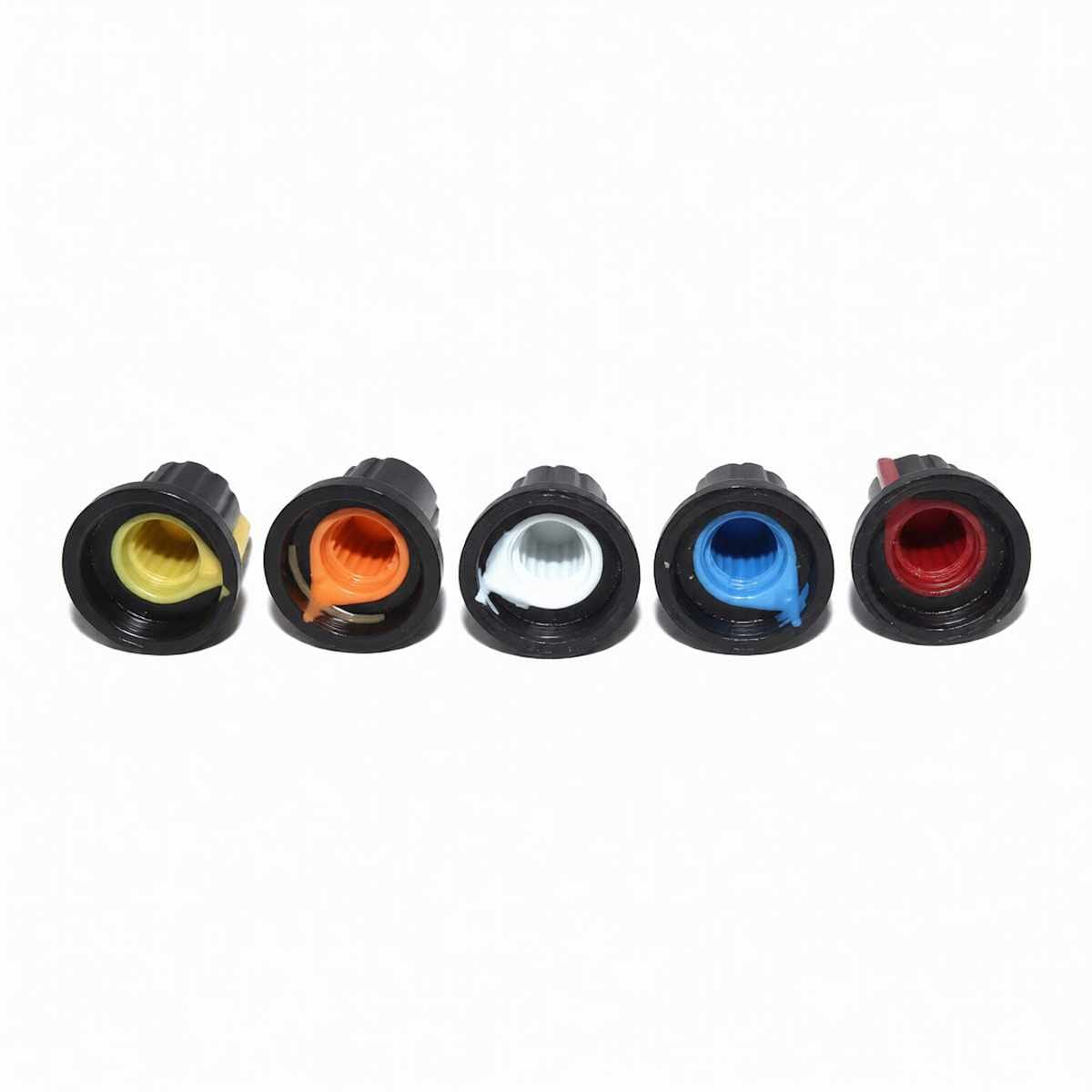 A termék 6 mm-es tengelyre szerelhető, ami a legtöbb standard potenciométer-tengely átmérője. A csúszó- vagy forgó potenciométeren egyszerűen rászipkázható vagy kis csavar segítségével rögzíthető.