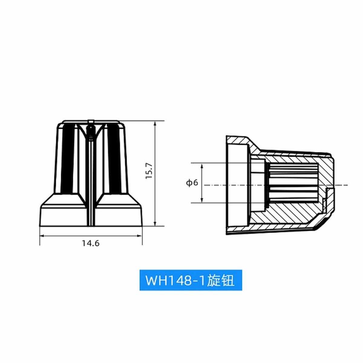 A potméter gomb egy mechanikus kezelőelem, amely a csúszó- vagy forgó potenciométer tengelyére erősítve biztosít felhasználói beavatkozást. A tengelyre rögzített gomb elfordításakor a potenciométer belső ellenállása változik, így analóg jelet állít elő. A gomb 6 mm-es belső furattal illeszthető a szabványos 6 mm tengelyekre. A gomb formai és felületi kialakítása biztosítja a stabil tapadást a felhasználó ujjainak, valamint vizuális elkülönítést több működési pozíció esetén.
