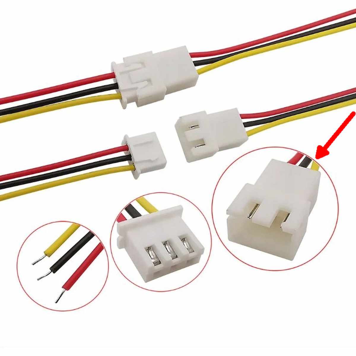 A kábel egy JST-XH sorozatú 3 pólusú apa csatlakozót hordoz, amely a szabványos 2,54 mm tűtávolságú interfészekhez illeszthető. A 20 cm hosszú, rugalmas vezeték lehetővé teszi a fizikai távolságok áthidalását egységek között anélkül, hogy panelre rögzített csatlakozót kellene használni.