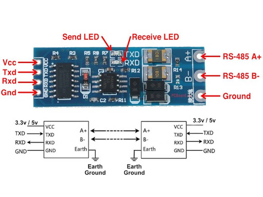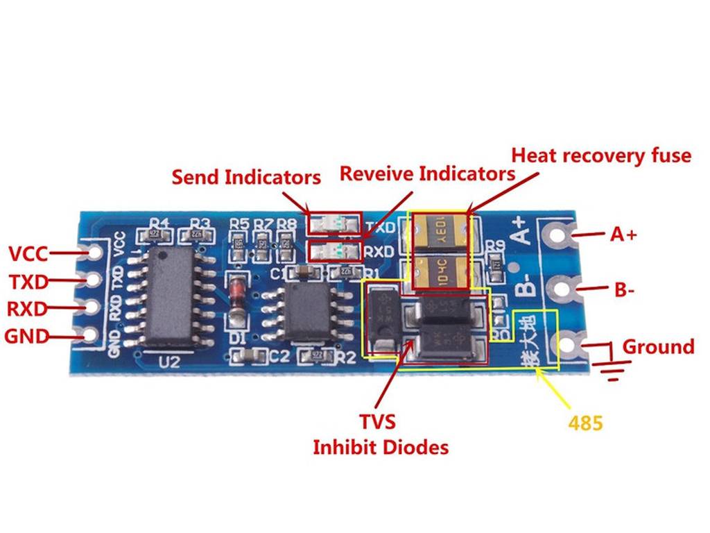 A modul központi eleme az RS485 meghajtó IC, amely automatikus irányítással (Auto Direction Control) rendelkezik. Ez azt jelenti, hogy a felhasználónak nem szükséges külön vezérelni a DE/RE jeleket – a modul érzékeli az adatküldés kezdetét, és ennek megfelelően vált adó és vevő üzemmód között.