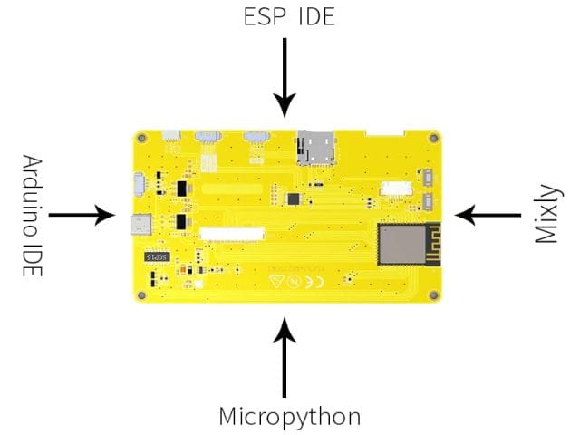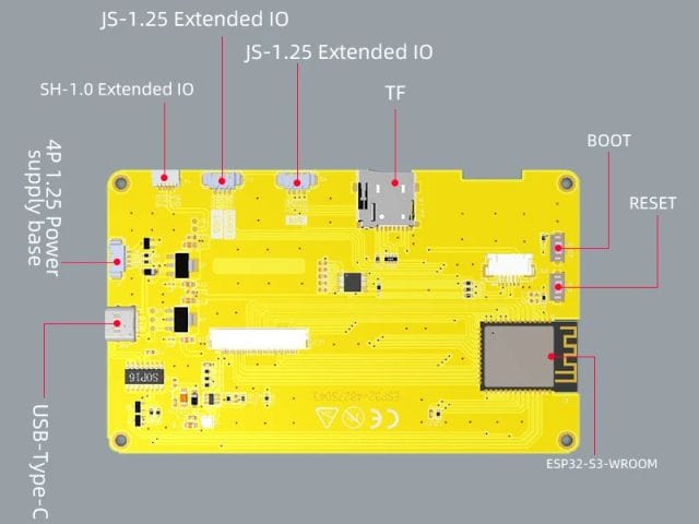 ESP32-4827S043C alaplap egy komplett, kiméretű IOT fejlesztő környezet és keretrendszer. (ESP32-S3 alapú HMI + SD-Reader + PSRAM + 4,3″ TFT (470×272) kapacitív érintőképernyővel.)