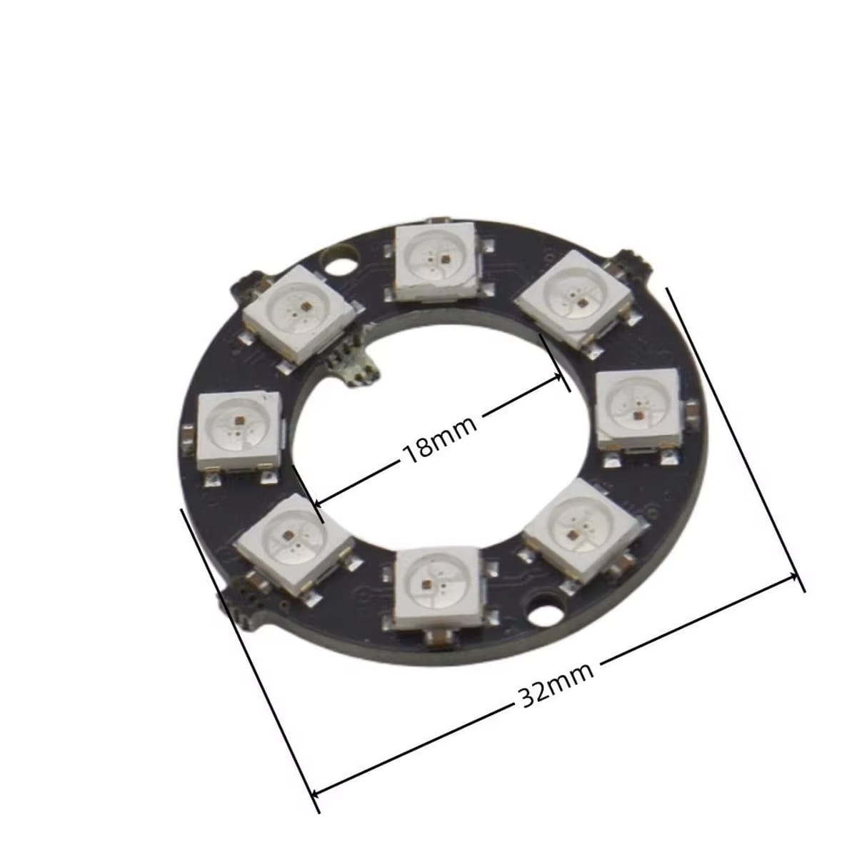 - 8× WS2812B címezhető RGB LED (NeoPixel kompatibilis)
