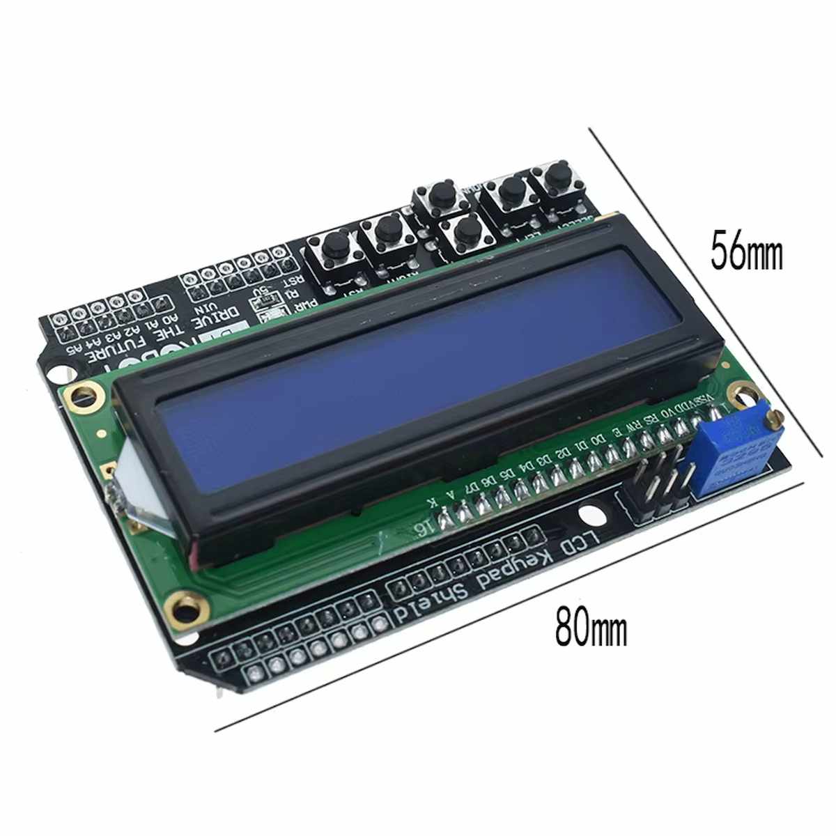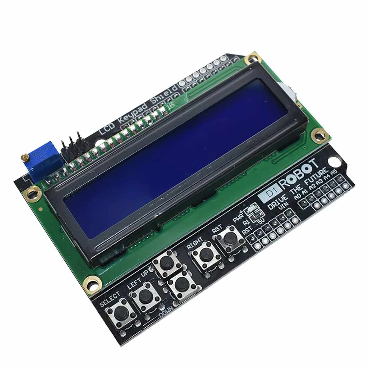 Az Arduino LCD Keypad Shield azoknak való, akik szeretnének egy egyszerű, kézre álló kezelőfelületet az Arduino projektjükhöz. Egyetlen panelen kapod meg a 16×2 karakteres kijelzőt és a vezérléshez szükséges gombokat, így nem kell külön modulokkal és kusza vezetékezéssel kezdened.