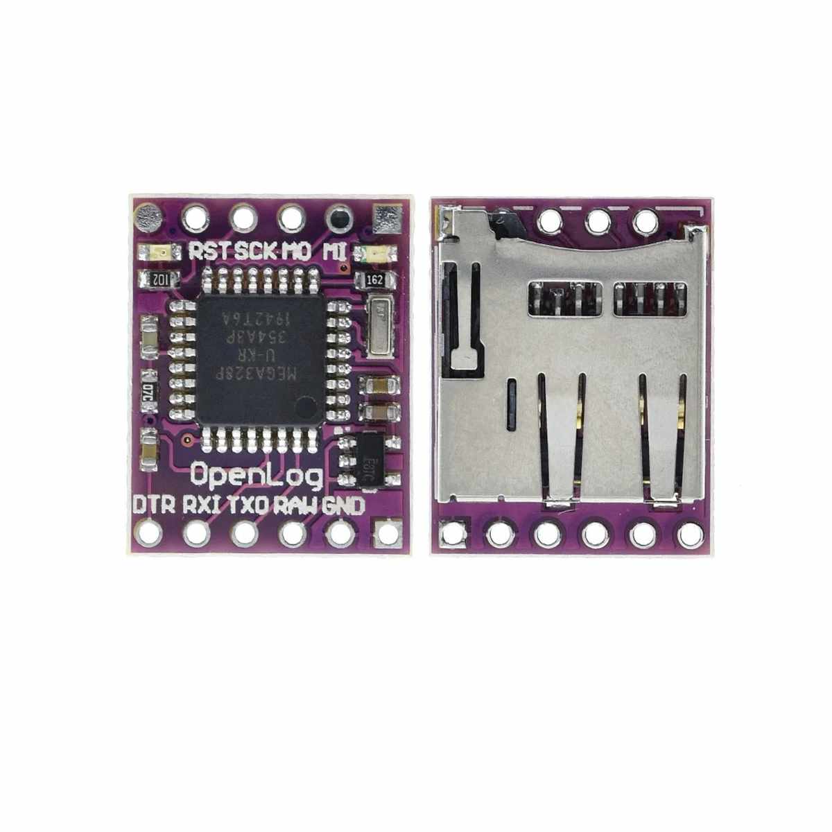 Az OpenLog egy beépített ATmega328P mikrovezérlővel működik, amely 16 MHz-en fut. A kommunikáció egyszerű UART soros vonalon történik (RX/TX), és a bejövő adatokat közvetlenül a micro‑SD kártyára menti hosszabb soros adatfolyamként is.
