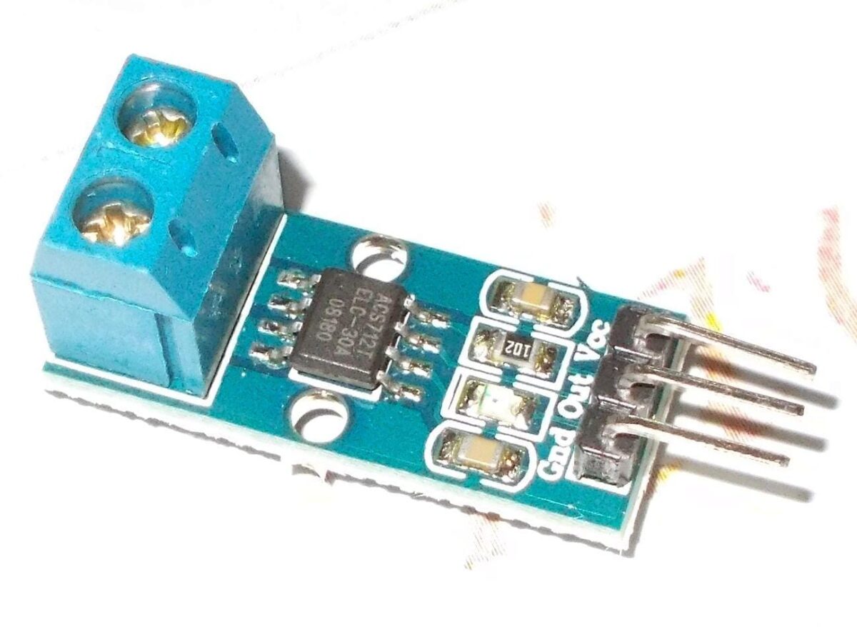 A GY-712 modul 30A-es áramszenzor 80kHz frekvenciáig képes mérni. Az átfolyó áram a félvezetőn belül mágneses teret hoz létre. Ezt hall elem segítségével méri, így a mérendő és a mérő áramkör közt villamos csatolás nem lép fel. A mérési kimenet 0-5V tartományú analóg jel – mely az átfolyó árammal arányos.